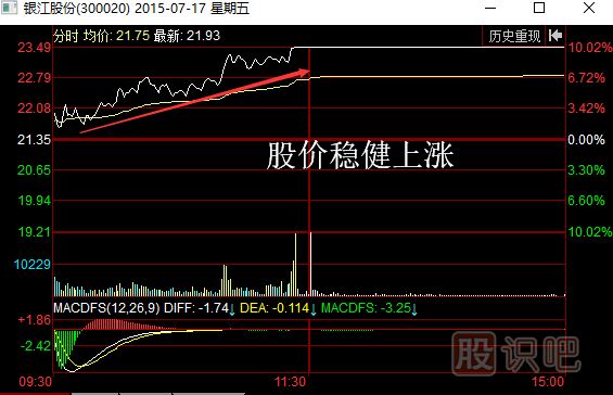 在一個(gè)交易日中,如果股票的分時(shí)圖能夠持續(xù)穩(wěn)健地上漲,成交量同步溫和放大,中間股價(jià)沒(méi)有明顯的回落,就說(shuō)明這個(gè)交易日中隨著股價(jià)上漲,持續(xù)有投資者追高買入股票。并且著投資者買入,股價(jià)越來(lái)越高,史多投資者也被上漲行情吸引進(jìn)來(lái),開(kāi)始買入股票并將股價(jià)向上拉升。此時(shí)該股票己經(jīng)進(jìn)入了穩(wěn)健的上漲行情中,具備了持續(xù)上漲的潛質(zhì)。