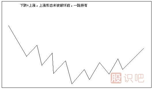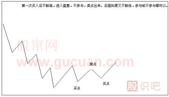 第二種,在下跌結束后轉為上漲或盤整的開端介入。前面的一個下跌走勢的結束,最典型的標志是不創(chuàng)出新的低點,而后面的走勢類型,是上漲或者盤整,是不可知的,都有可能。當下,我們無需去思考去分析后面是什么