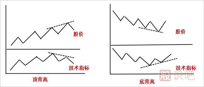 (3)指標的背離。指標的背離現(xiàn)象在使用技術指標時應引起投資者的高度關注。它指的是技術指標曲線波動的趨勢與股票價格曲線運行趨勢沒有形成一致,當背離的走勢一旦出現(xiàn),表示價格的變動沒有得到指標的支持。背離的最大作用在于:雖然價格目前來講還沒有出現(xiàn)上漲或下跌,但是指標可以提前預測出股價的頂部或底部區(qū)域。背離可分為頂背離和底背離