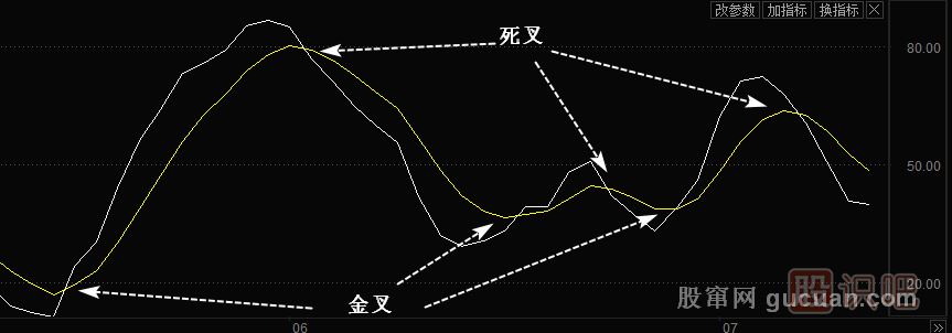 指標的交叉是指通過技術指標圖形中兩根指標曲線發(fā)生交叉的現(xiàn)象,來判斷多空雙方力量的對比,從而提示股票的買賣時機。指標的交叉分為黃金交叉、死亡交叉和0軸交叉三種類型。