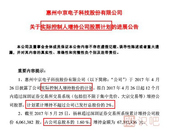 【例1】中京電子(002579):17年5月25日實(shí)控人增持606萬股