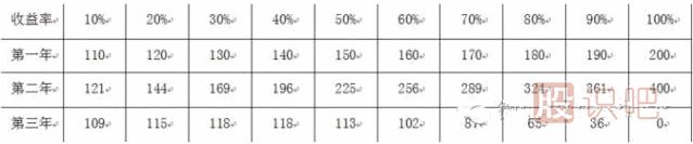 (一)因?yàn)?ldquo;盈虧同源”,一個(gè)系統(tǒng),收益率多大,回撤就有多大。如一個(gè)年平收益率30%的交易系統(tǒng),其回撤(即虧損幅度)也可能達(dá)到30%。比如西蒙斯的量化基金,年平均收益率高達(dá)35%~40%,發(fā)生虧損時(shí),凈值也跌落到63%左右;比如索羅斯,其基金年收益率大約在20%~30%,發(fā)生嚴(yán)重虧損時(shí),基金凈值一度落到60%~70%。所以收益并不是越高越好。比如,一個(gè)交易系統(tǒng),年收益率30%,第一年130%,第二年169%,第三年虧損30%,凈值為169%×(1-30%)=118.3%;年收益率50%,第一年150%,第二年225%,第三年虧損50%,凈值為225%×(1-50%)=112.5%;年收益率60%,第一年160%,第二年256%,第三年虧損60%,凈值為256%×(1-60%)=102.4%。如下表