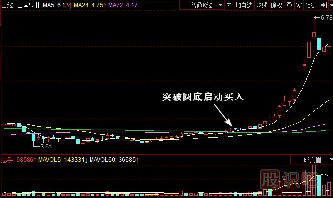 云南銅業(yè)(000878)該股是非常典型的股,在經(jīng)過長期的橫盤筑底的過程后,股價緩緩?fù)黄?a href=http://m.jctcp6.com/GPRM/sy/1950.html target=_blank class=infotextkey>年線和所有的均線,開始慢慢抬頭。龍?zhí)ь^的形態(tài)非常明顯。在剛剛突破的時候就可以介入,長期持有。因為“橫有多長,豎有多高”,很多時候等的就是這樣的賺錢機(jī)會。一定不要輕易放手。在股票市場,任何股票都會被主力所利用,這些年里的有色金屬或者礦業(yè)的股票更是被瘋狂炒作過,一旦炒作完畢將帶來長期的盤整階段。一般的投資者最后不要去碰那些經(jīng)過大幅操作的股票,因為誰也知道一旦人氣消散、資金出逃后,股票會像風(fēng)箏斷線一樣,不知掉到那里去。通常超級強(qiáng)勢股都是沿著5日均線不斷向上的,很少跌破5日線,一旦高位出現(xiàn)“避雷針”信號或者跌破5日線要第一時間考慮離場觀望。
