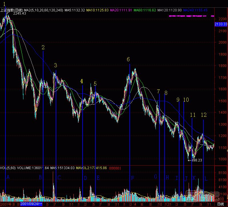 這就是2001年5月22日的2210點(diǎn)到2001年7月10日的2189點(diǎn)的情景。當(dāng)市場(chǎng)還處于一片看好后市的歡呼聲中時(shí),我們開(kāi)始清倉(cāng)撤出股市,并組織旅游隊(duì)外出旅游,以防又殺回股市。2001年7月6日晚,我還寫(xiě)了《滬深兩市已經(jīng)進(jìn)入空頭市》,引來(lái)無(wú)數(shù)罵聲。我顧不得挨罵了,要把頭部告訴更多的人,以后每周一篇空頭文章,最終被罵為“黑嘴”。
