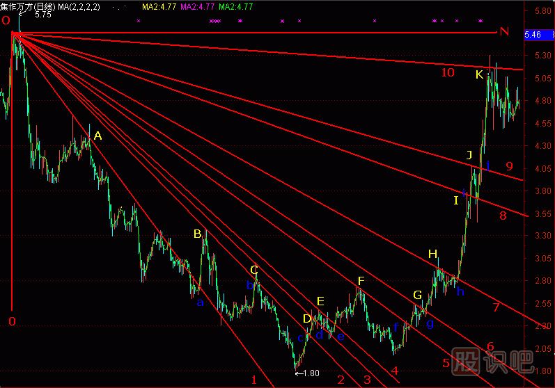 1、選一個股價起跌點(diǎn)作為原點(diǎn)“O”;