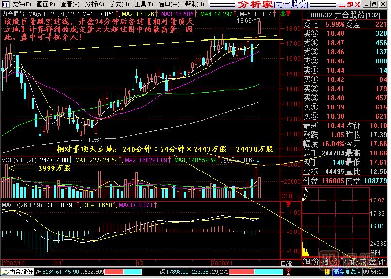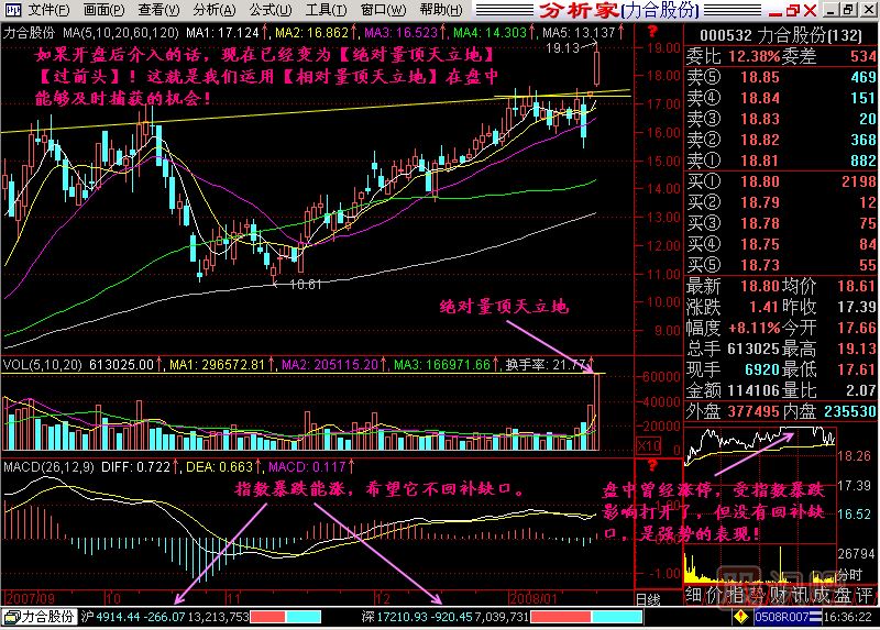 小結(jié):該節(jié)的相對量頂天立地計算公式,非常適合在盤中及時發(fā)現(xiàn)收盤后,成交量可能成為絕對量頂天立地的股票,這樣就為我們盤中及時介入提供了可能。
