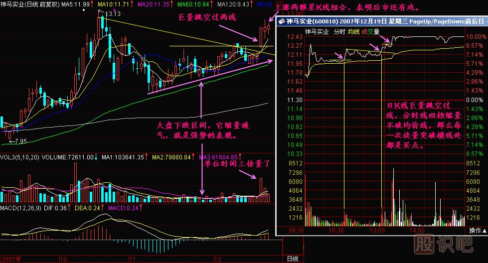 巨量跳空,回檔買進(jìn)聽起來很簡單,好像誰都能完成,其實(shí)不是那么簡單的,它要求你有足夠扎實(shí)的各項(xiàng)單一技術(shù)功底,要能在短時(shí)間內(nèi)判斷出該股一段時(shí)間來的情況,是否具備連續(xù)上漲的條件等等……,這個(gè)技術(shù)是要多模擬總結(jié)才能練好的。