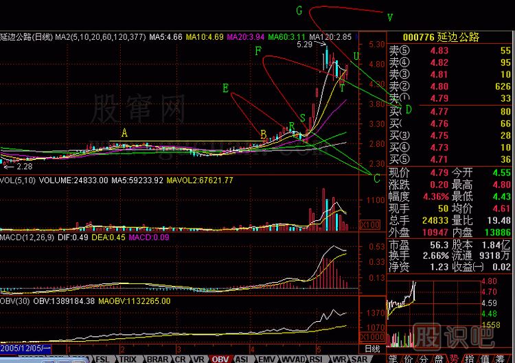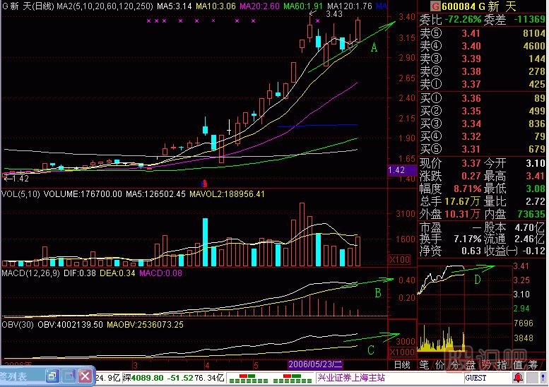 回檔不破OBV炒短線的股民害怕股價回檔。有時,一個小小的回檔,100萬元就成了90萬元。怎樣防止吃回檔?《短線是銀》叢書有過許多敘述。圖265...