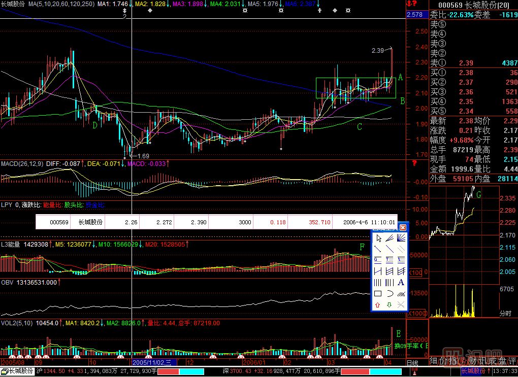 OBV飛行理論圖241-1以前我們學(xué)過股價走勢的飛行理論,是指日K線走勢沿著60日平均線滑行,拉起機頭,股價就上漲了。今天我講OBV飛行理論,大家...