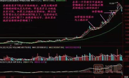 3、在股價(jià)高開(kāi)T線后不遠(yuǎn)的地方,如果出現(xiàn)油管不暢通的情況是允許的。畢竟高阿奎主力的成本區(qū)不遠(yuǎn),如果主力就此出貨的話,那么還沒(méi)等貨出完已經(jīng)跌回去T線上了,這樣的話豈不是無(wú)利可圖了。但是股價(jià)到達(dá)中,高尾椎以后就應(yīng)該保持油管暢通。