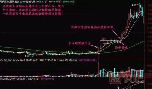 1、該股在離開(kāi)地面后的第一次空中盤(pán)旋時(shí),仍能保持油管暢通,則上升能量充足,一旦突破空中盤(pán)旋最高收盤(pán)價(jià)的瞬間,就是買點(diǎn)。