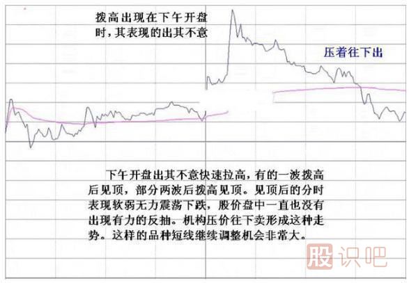 通常的個(gè)股走勢(shì),都是跟隨大盤而動(dòng),但有的個(gè)股,走勢(shì)完全不受大盤任何左右,開盤即直奔高點(diǎn)而去,當(dāng)?shù)竭_(dá)某一可觀高度后,也不管大盤走勢(shì),直接滑落,這種分時(shí)走勢(shì),不是莊家拉高出貨,就是莊家大幅振蕩洗籌。