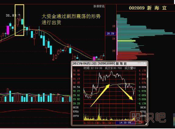 莊家利用股價(jià)全天劇烈震蕩,吸引散戶進(jìn)場(chǎng)。當(dāng)股價(jià)強(qiáng)勢(shì)上揚(yáng)時(shí),散戶以為股價(jià)還將拉升,追漲進(jìn)場(chǎng);當(dāng)股價(jià)下降非常多時(shí),散戶以為底部到來,爭(zhēng)相“抄底”,此類走勢(shì),大概率是大資金出逃。