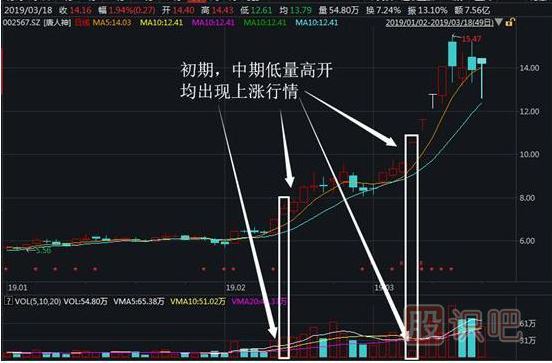 出現(xiàn)底量高開種情況一般為非散戶行為為主,低量高開發(fā)生在相對低位的概率較大。出現(xiàn)這種情況的原因是,主力通過在低位的悄悄吸籌,已經(jīng)掌握了大部分的籌碼,并很好地進(jìn)行了鎖定。低量高開一般是主力的拉升行為。股價(jià)飆外一觸即發(fā)。大家可以堅(jiān)定持有手中股票。