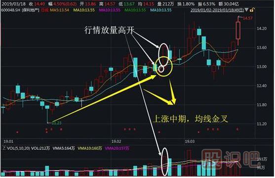 如果在上漲中期,出現(xiàn)巨量高開,上漲中期一般指行情在前期經(jīng)歷上漲后回調(diào)后,股價(jià)在此回到10日均線之上運(yùn)行,并且5日均線與10日均線再次形成金叉,此時(shí)投資者依舊可以堅(jiān)定持有手中股票。