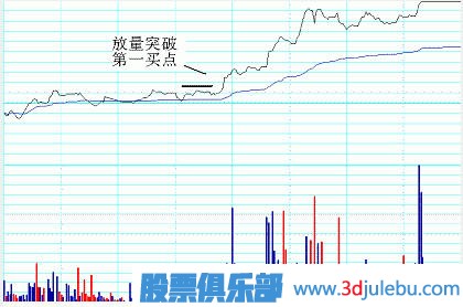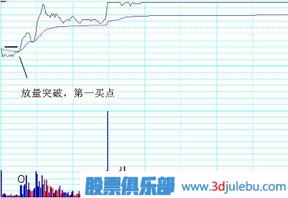 由于在這個位置股價(jià)往往具有真正意義上的第一次創(chuàng)下盤中的新高,第一次創(chuàng)下盤中的最大量能,因此這個買點(diǎn)把它稱之為:第一買點(diǎn)。第一買點(diǎn)的位置往往是合理的,而且投資者也比較容易從圖中的量價(jià)變化上找到這個點(diǎn)位。