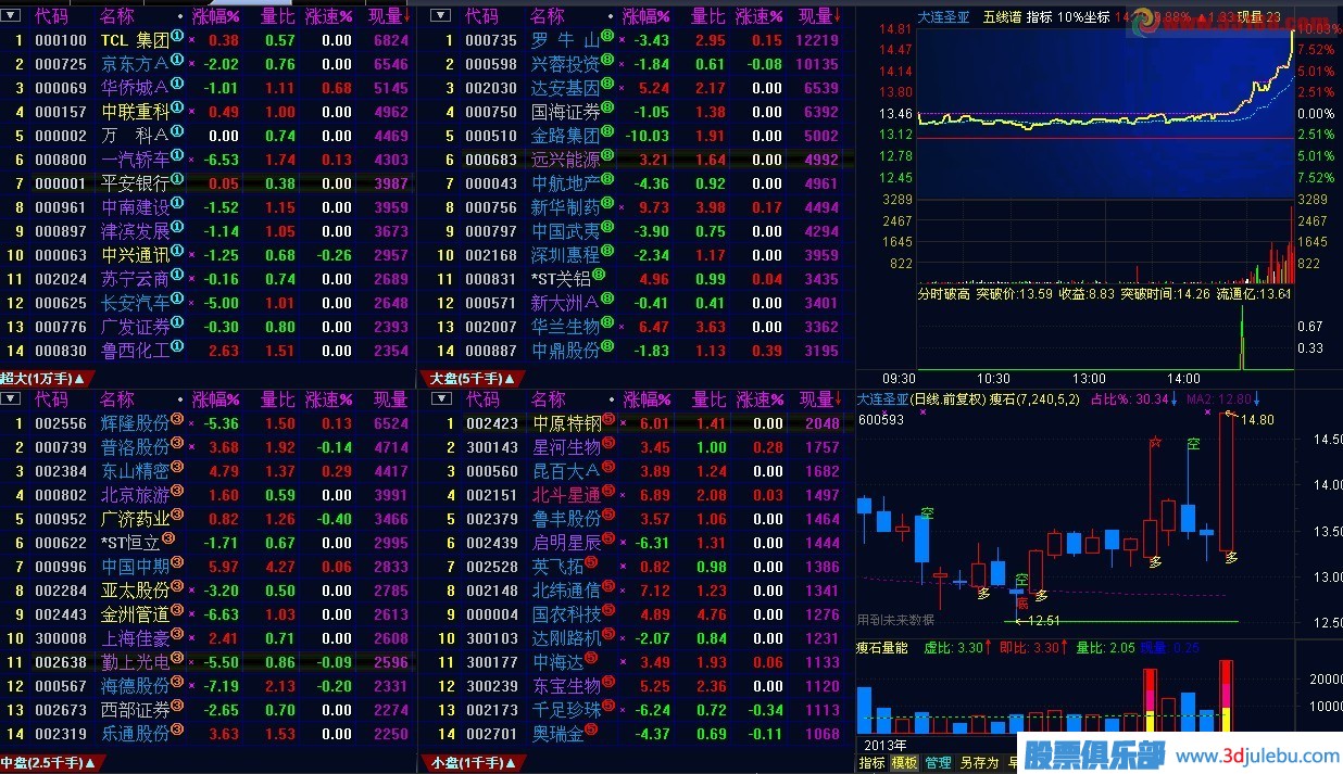3 依據(jù)流通股本的股票看盤軟件提醒您通達(dá)信軟件通過現(xiàn)量尋找異動(dòng)個(gè)股大小,將整個(gè)市場(chǎng)分為四大版塊 (超大盤/大盤/中盤/小盤)