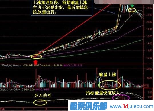 2) 該股在7月下旬放量上漲時(shí),MACD兩條指標(biāo)線自零軸之下重新跨上零軸,是多方轉(zhuǎn)強(qiáng)的一個(gè)信號(hào),但是單靠找一個(gè)信號(hào)還不夠,還必須依靠成交量放大配合,才能確信多方確實(shí)轉(zhuǎn)強(qiáng)了。