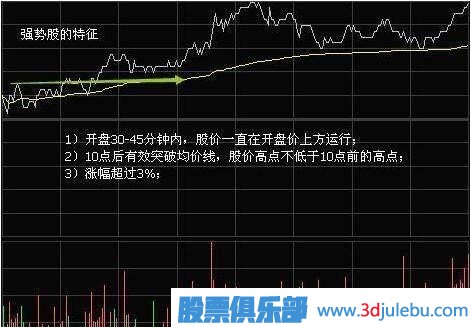 1)開盤30-45分鐘內(nèi),股價(jià)一直在開盤價(jià)上方運(yùn)行;