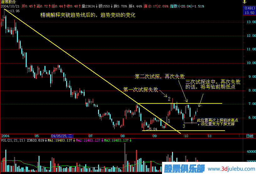 四、2B法則的運用必須是明顯的上升(或者下降如何看盤和技巧解析趨勢線學習教程)趨勢后的盤整,而不是全天都在盤整的時候運用2B法則,那只能經常來回止損了。所以切忌在大區(qū)間盤整的時候運用2B法則!