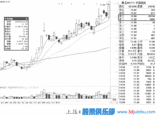 在報價欄里出現(xiàn)大量的賣單而少量的買單現(xiàn)象,俗稱“上壓板”。如果空頭真要出貨,往往不會掛在報價欄里,即使其大賣單只成交了部分而剩余的掛在賣單上檔處,也會馬上撤單,重新照現(xiàn)有