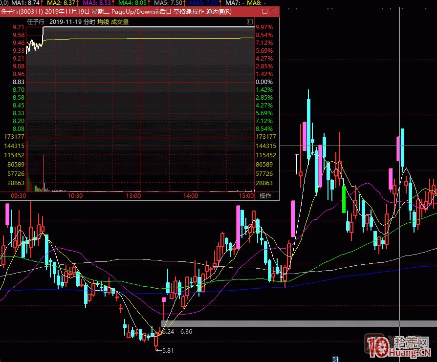 比如19年11月19日的任子行 ,是標準的競價弱轉(zhuǎn)強,18號因為減持的問題,任子行一度被砸廢,19號開盤,任子行爆量高開,進攻屬性十足,直接帶飛身位鼎龍文化 。