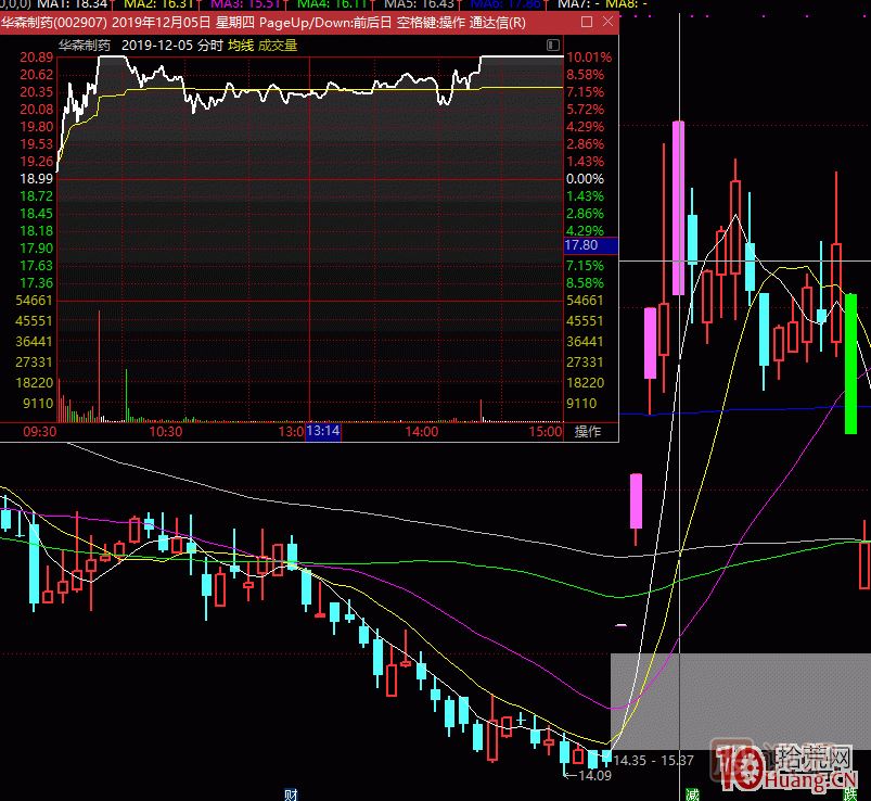 19年12月5日的華森制藥 ,前一天漲停未遂,沖高回落9%,第二天紅盤開盤,這也是典型的競價弱轉(zhuǎn)強。