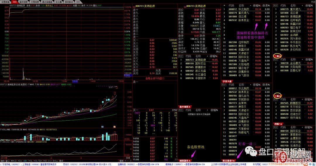 一塊屏幕就是上面這樣,電腦下載兩個(gè)軟件交叉著看也行,比如當(dāng)天交易完了,就盯著同花順的<現(xiàn)手>和短線精靈,看看炸板情況。