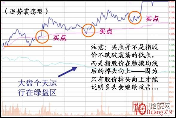 此種類型的震蕩走勢(shì),可分為順勢(shì)震蕩型 (震蕩的節(jié)奏與大盤同步)和逆勢(shì)震蕩型 (震蕩是節(jié)奏與大盤相反)兩類。