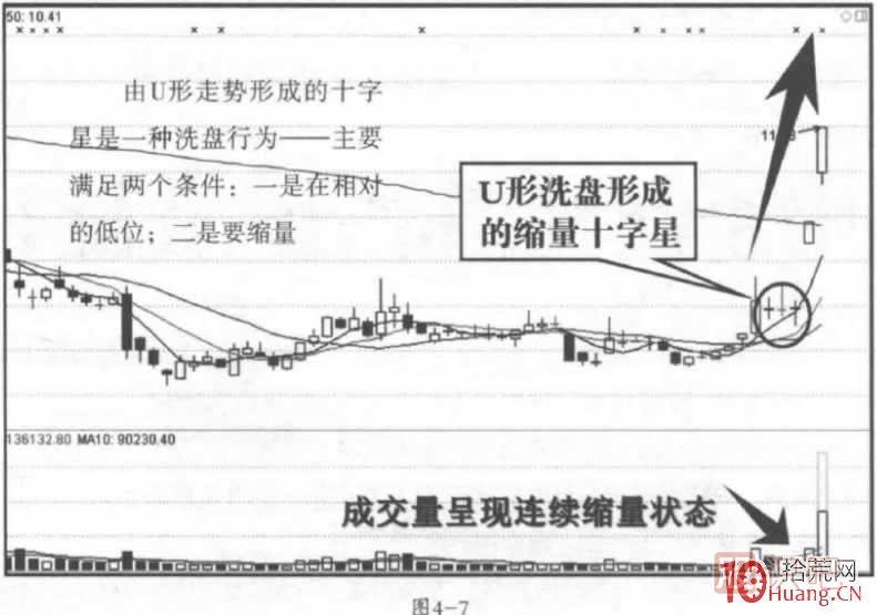 由U形走勢形成的十字星是一種典型的洗盤行為——主要滿足兩個(gè)條件: