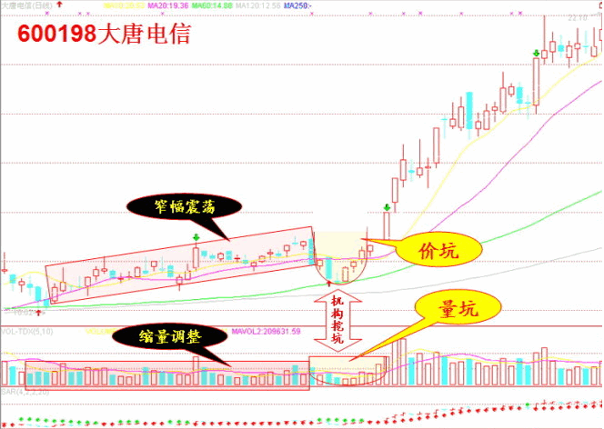 你會看到,它的K線在做了一個坑形后一直漲了上 來,并輕松地突破了原來整理的平臺,絕塵而去。你就是這樣被拋下了。大家都看好,可就是不漲,20日后卻突然破位下去了,K線在做了一個標(biāo)準(zhǔn)的坑后,輕松 突破前期平臺,已經(jīng)再創(chuàng)新高了。