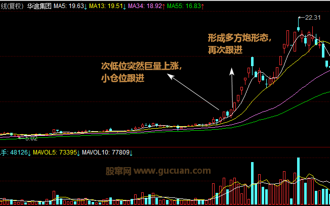 因此今后遇到底部突然放巨量的情況時(shí),切忌盲目介入,應(yīng)該先將其列入股票池進(jìn)行跟蹤觀察,如果股票直接連續(xù)放量且站上重要支撐位置, 則可考慮伺機(jī)介入,如果股票很快便恢復(fù)平靜且長(zhǎng)時(shí)間沒(méi)有動(dòng)作便可取消其跟蹤行動(dòng),如果第-次放巨量后不久股價(jià)出現(xiàn)明顯異動(dòng),這時(shí)應(yīng)該在股價(jià)站上重要支撐位后快速介入,短期收益應(yīng)該不小,如上圖的正和股份便可在再次放量后站上所有短期均線時(shí)快速介入,短期收益超乎想象。