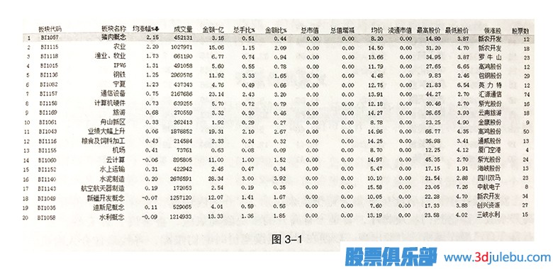 (1)一般炒股軟件都會根據(jù)市場聯(lián)動性原理將全部股票劃分成幾十個行業(yè)板塊或概念板塊,每個板塊都有綜合指數(shù)。這個綜合指數(shù)是我們判斷強弱板塊的重要指標(biāo)。