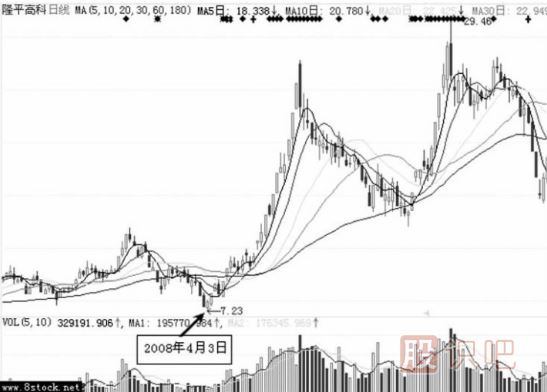 主力洗盤吸籌探索股票洗盤k線形態(tài)大幅回落一般發(fā)生在大勢調(diào)整時(shí),機(jī)構(gòu)會順勢而為,借機(jī)低吸廉價(jià)籌碼。投機(jī)股經(jīng)常運(yùn)用這種手法,或盤中機(jī)構(gòu)已獲利頗豐。圖8-14為麥...