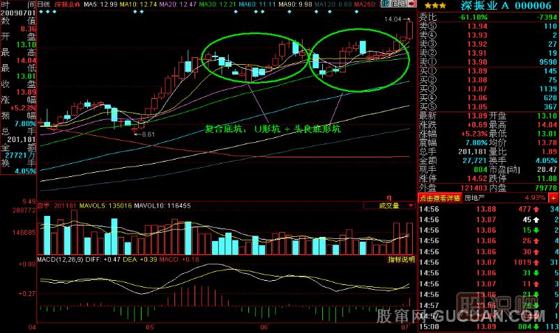 三、復(fù)合底坑:U型+頭肩底型一深振業(yè)(000006)