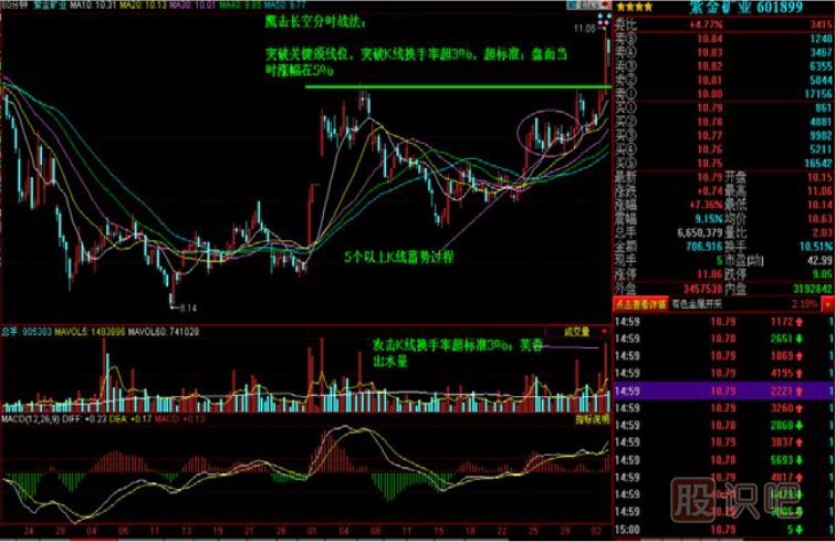 6、突破分時K線換手率超3%。