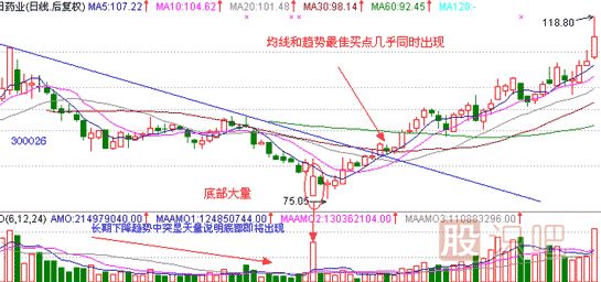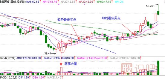 2.底部大量出現后,需股價突破下降趨勢,并出現趨勢最佳買點時再參與,不要見到底部大量一出現就立馬入場,這樣猴急狠容易犯錯誤。