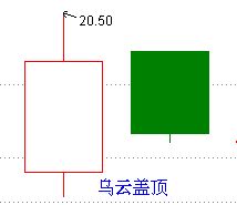 刺透形態(tài),在形態(tài)上是和頂部形態(tài)研究中的烏云蓋頂相對(duì)應(yīng)的底部形態(tài),我們來(lái)通過(guò)下面兩幅圖對(duì)比一下: