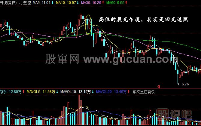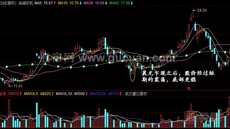 4.晨光乍現(xiàn)K線組合只用于在底部區(qū)域研判股價,在高位謹防是回光返照。