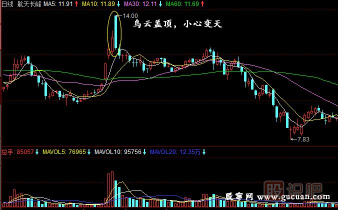 我們需要結合實際情況來分析,烏云蓋頂看跌信號是否明確跟兩個因素有關,一是陰線處的量能,二是陰線的長短。