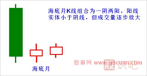 1.海底月K線為大陰線加小陽線的K線組合。