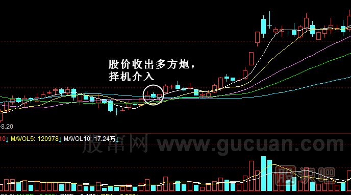 3.多方炮出現(xiàn)在漲幅剛剛形成的時候,是較好的介入點。
