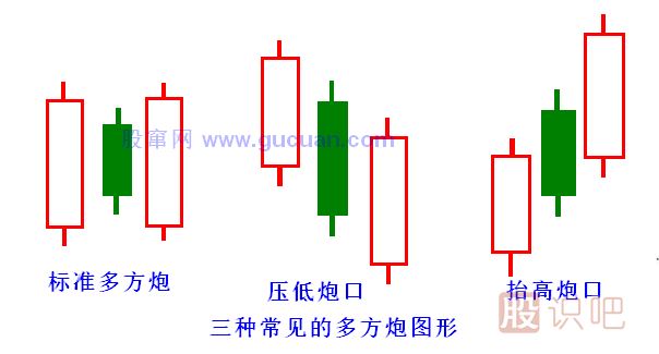 1.多方炮一般是“兩陽夾一陰”的K線組合,也可以變異為“三陽夾兩陰”。