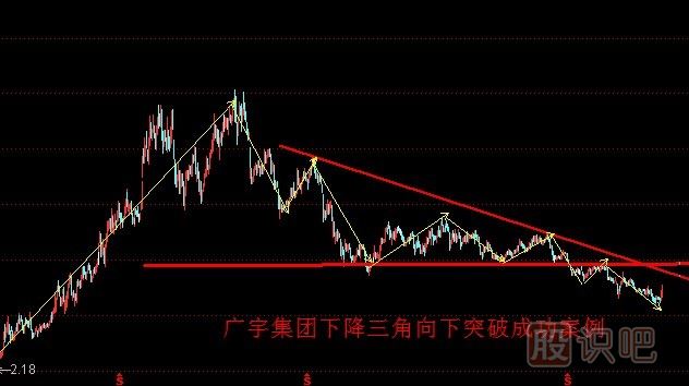 4、廣宇集團下降三角向下突破案例