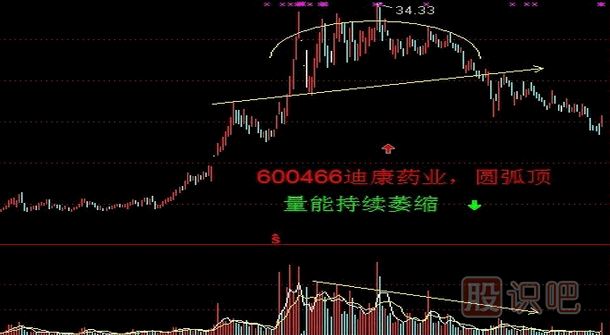 圓弧頂指K線在頂部形成的圓弧形狀。