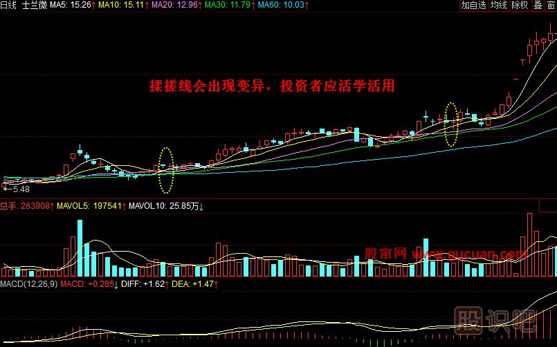 通過實(shí)例對(duì)照分析,我們就可以發(fā)現(xiàn),揉搓線一般是主力進(jìn)行洗盤的標(biāo)志,在經(jīng)過短期的震蕩清洗之后,重心得到穩(wěn)步上移,后市往往馬上會(huì)出現(xiàn)拉升行情,同時(shí)我們也應(yīng)當(dāng)注意,這樣的揉搓線量能一般比較溫和或者縮小,如果出現(xiàn)量能急速放大的揉搓線,則要小心主力利用散戶的定性思維進(jìn)行對(duì)敲出貨。