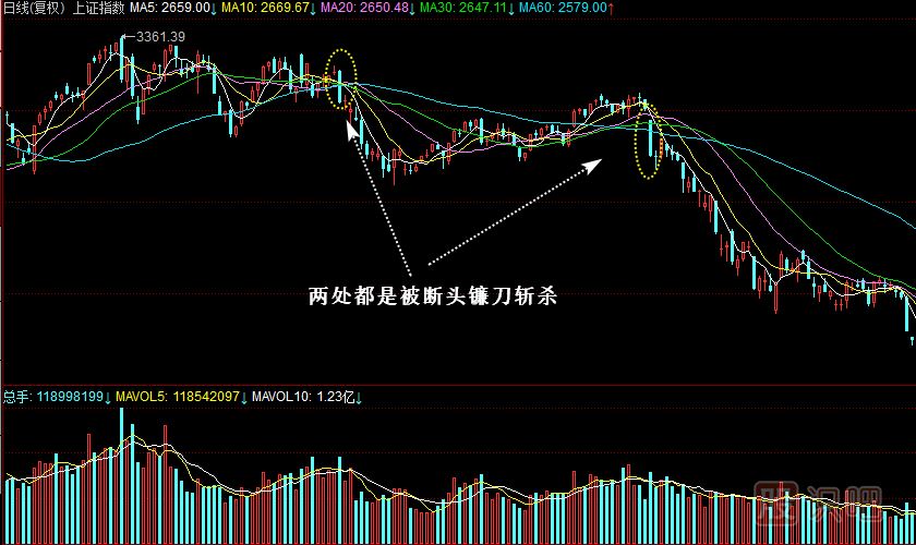 4.斷頭鐮刀K線組合是明顯的賣出信號,投資者切莫抱有幻想。