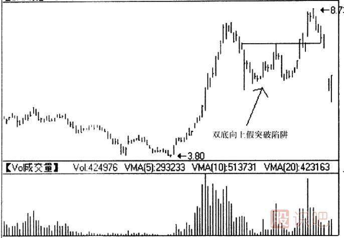 在雙底形態(tài)形成過程中,股價未構(gòu)成對頸線的有效突破,就可能形成雙底陷阱。通常,雙底陷阱有兩種類型: