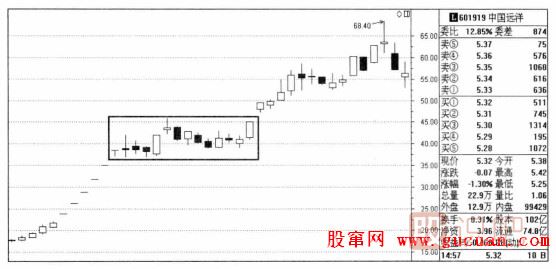 如上圖是2007年中國(guó)遠(yuǎn)洋走勢(shì)圖,在圖中我們可以看到,中國(guó)遠(yuǎn)洋在經(jīng)過(guò)一輪大漲之后,橫盤休整做了矩形整理,之后又出現(xiàn)了新一輪拉升,最終從20元左右一直上漲至最高64元。
