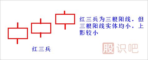 K線形態(tài) - 紅三兵【K線形態(tài)組合】第六節(jié)紅三兵一、形態(tài)認(rèn)識(shí)紅三兵由三根K線構(gòu)成,三根K線都是陽(yáng)線,因此得名“紅三兵”。其特點(diǎn)是三...